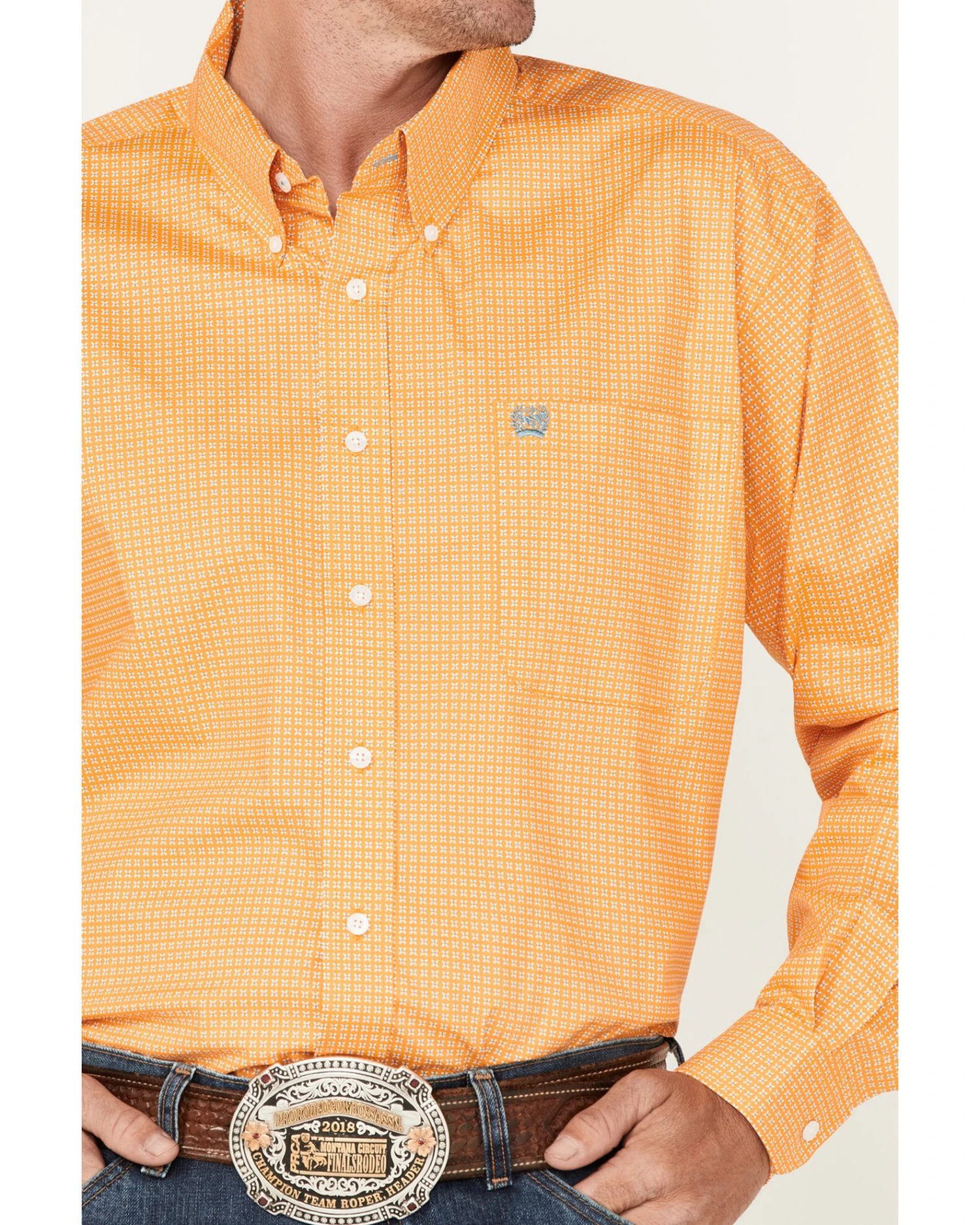 Cinch Men’s Cross Orange Geo Print Long Sleeve Button Down Western Shirt