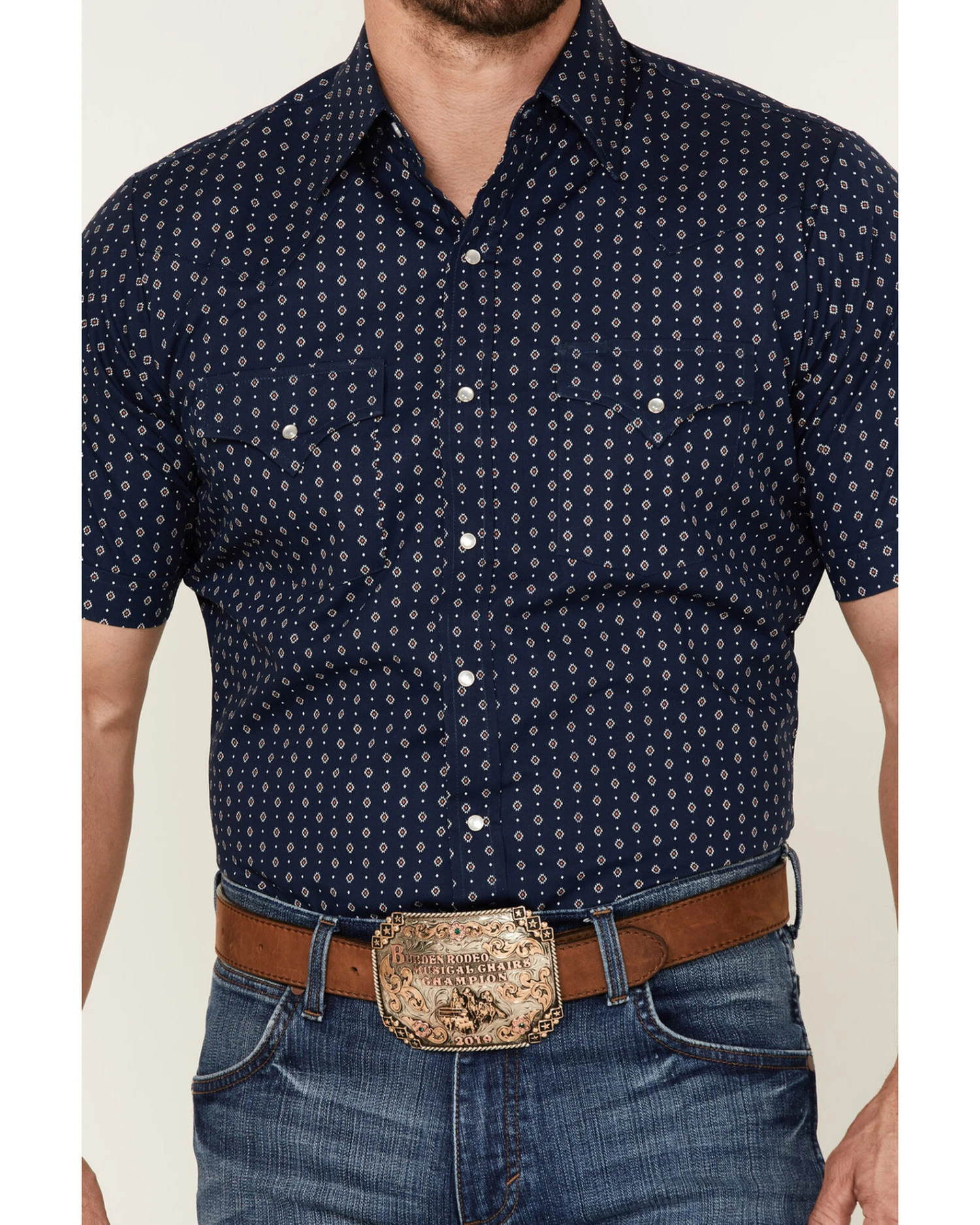 - Pearl snap down placket