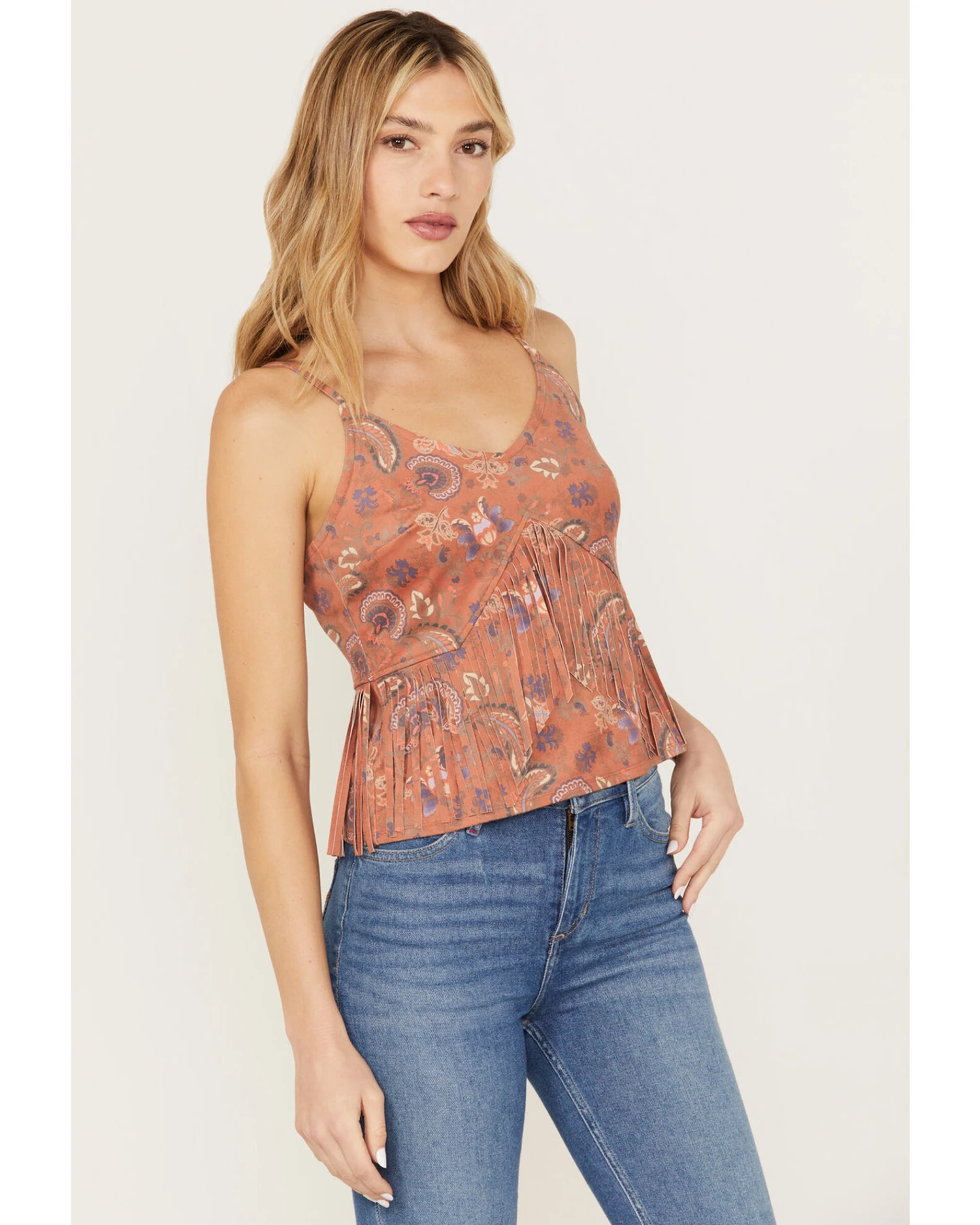 Idyllwind Women’s Golden Road Print Fringe Top