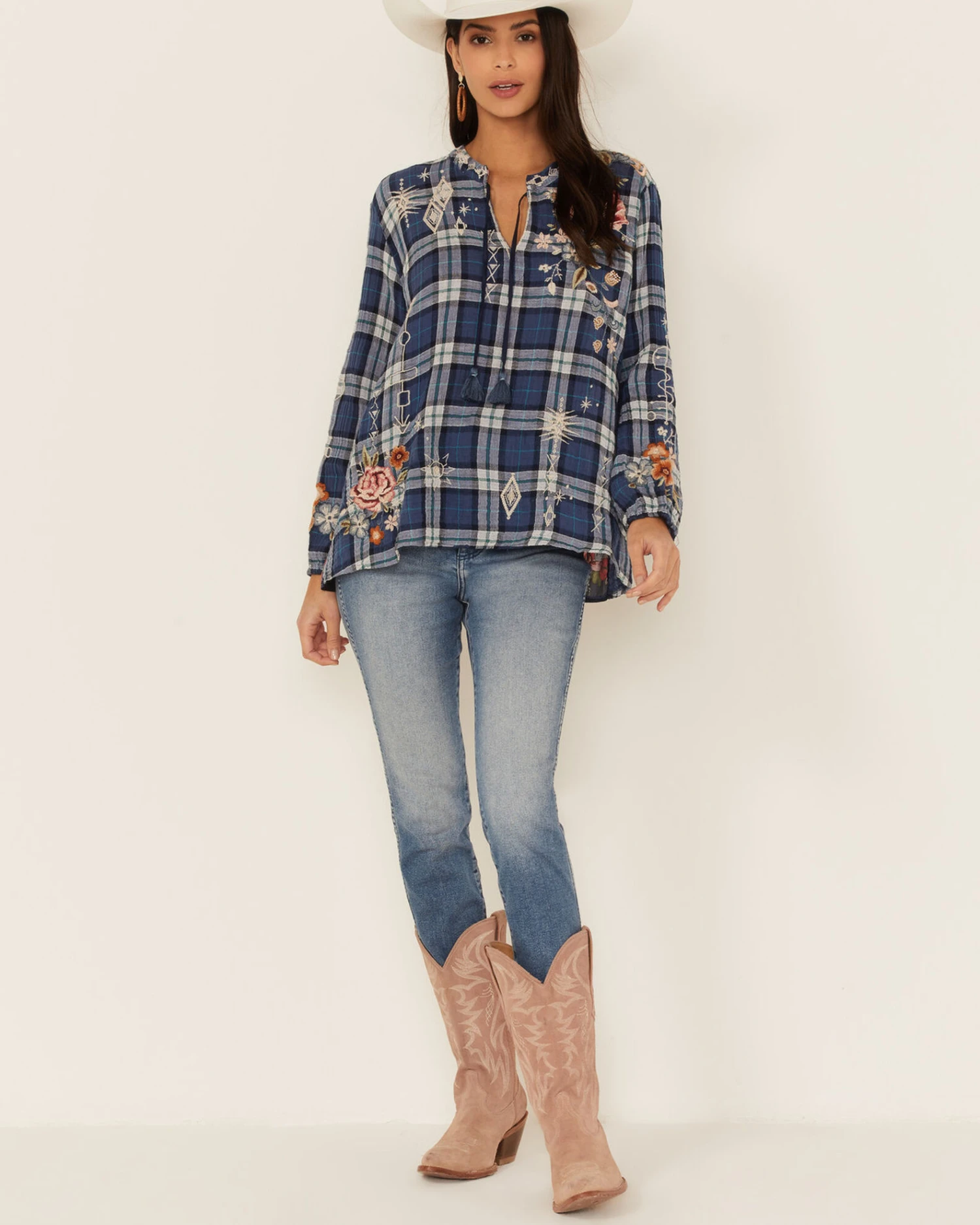 - V-neckline with tassel trim