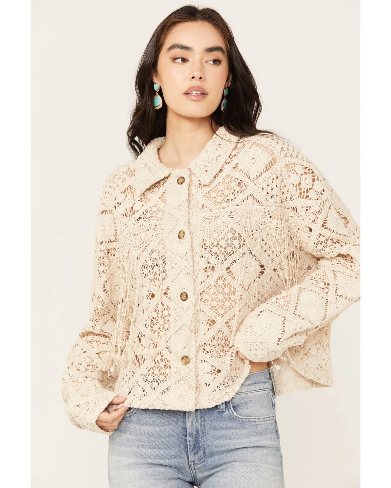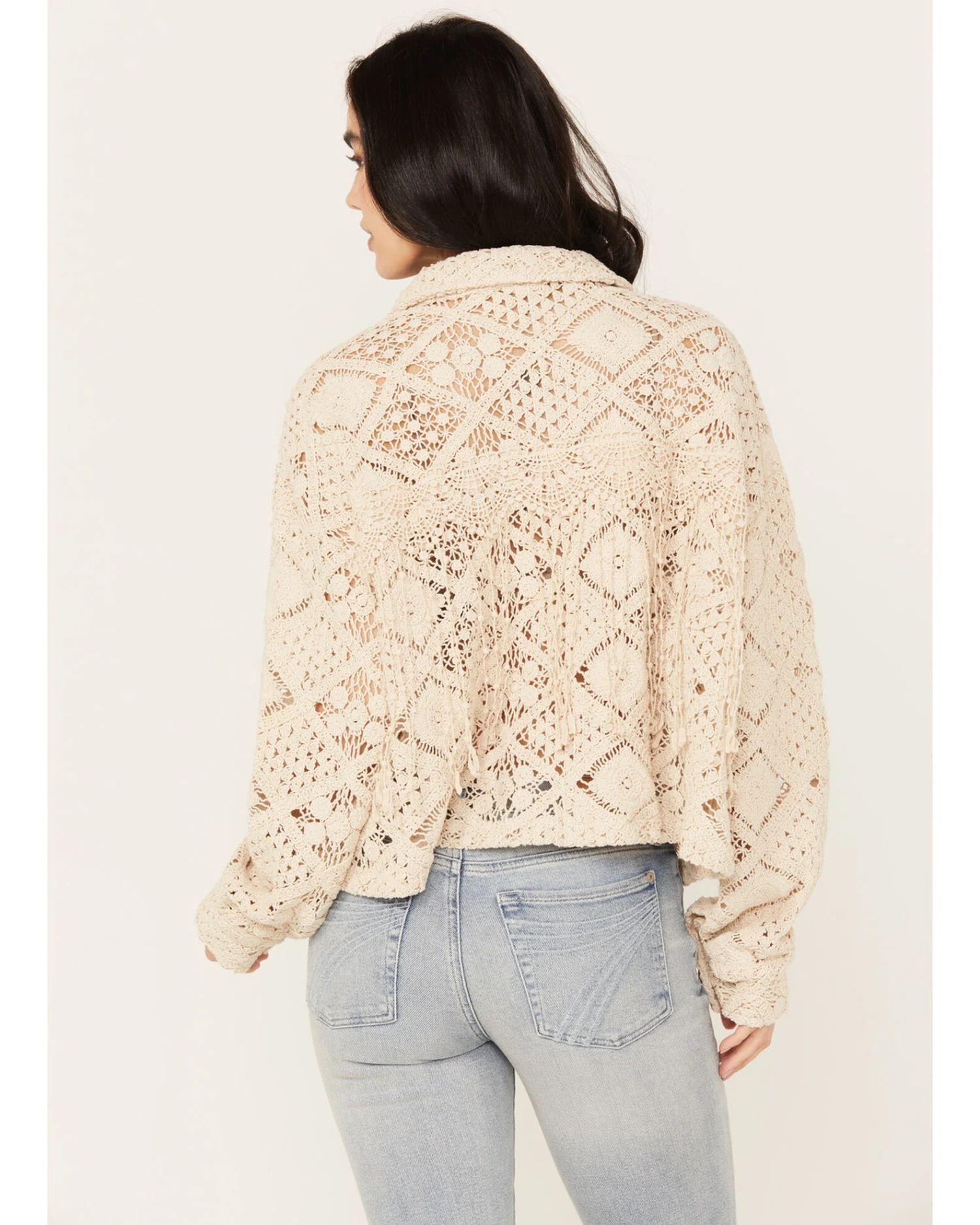 - Crochet fringe detail on front and back