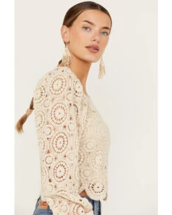 Flying Tomato Women’s Crochet Long Sleeve Peasant Top