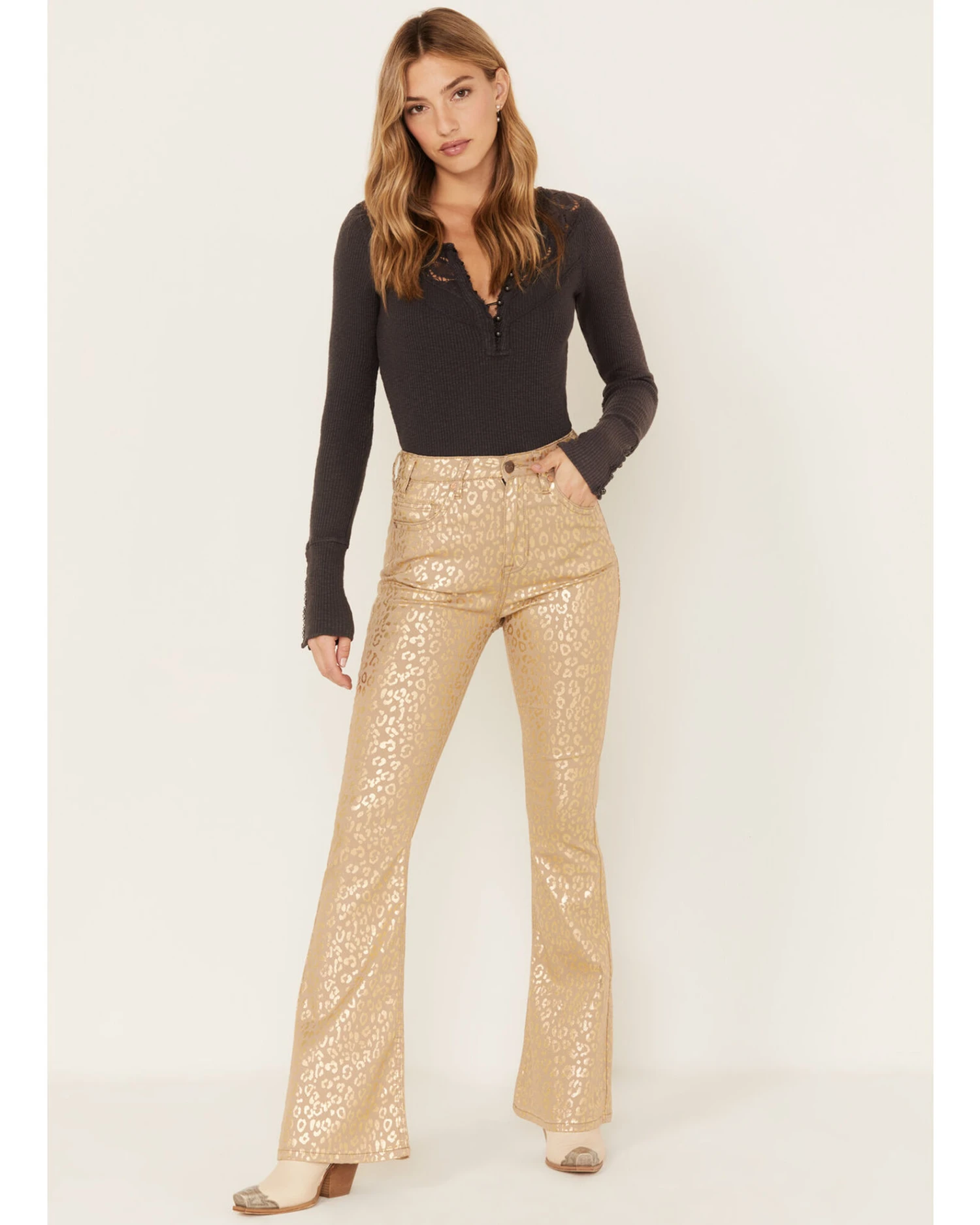 Be the first to review “Rock & Roll Denim Women’s Metallic Leopard Print High Rise Stretch Flare Jeans” Cancel reply