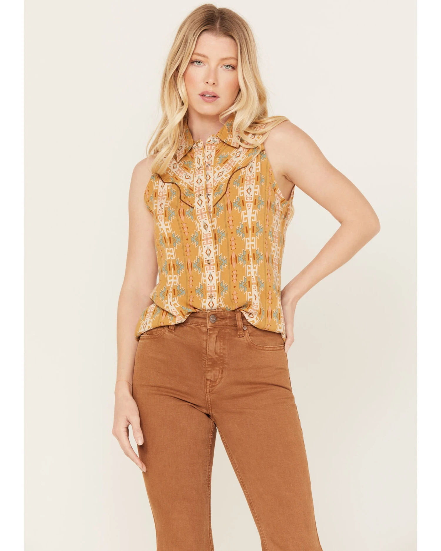 Rock & Roll Denim Women’s Southwestern Print Sleeveless Snap Tank