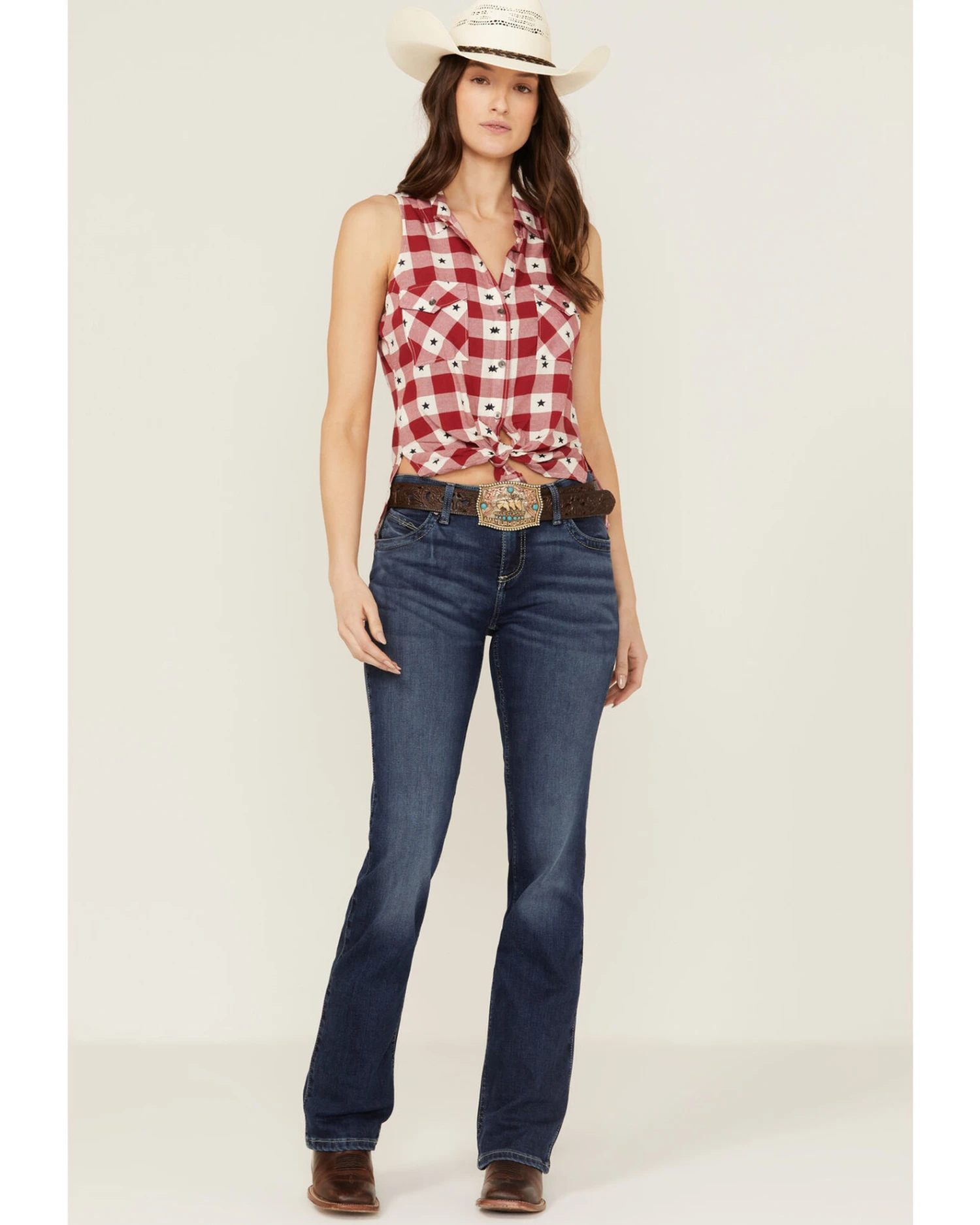 Shyanne Women’s Plaid Print Stars America Sleeveless Top
