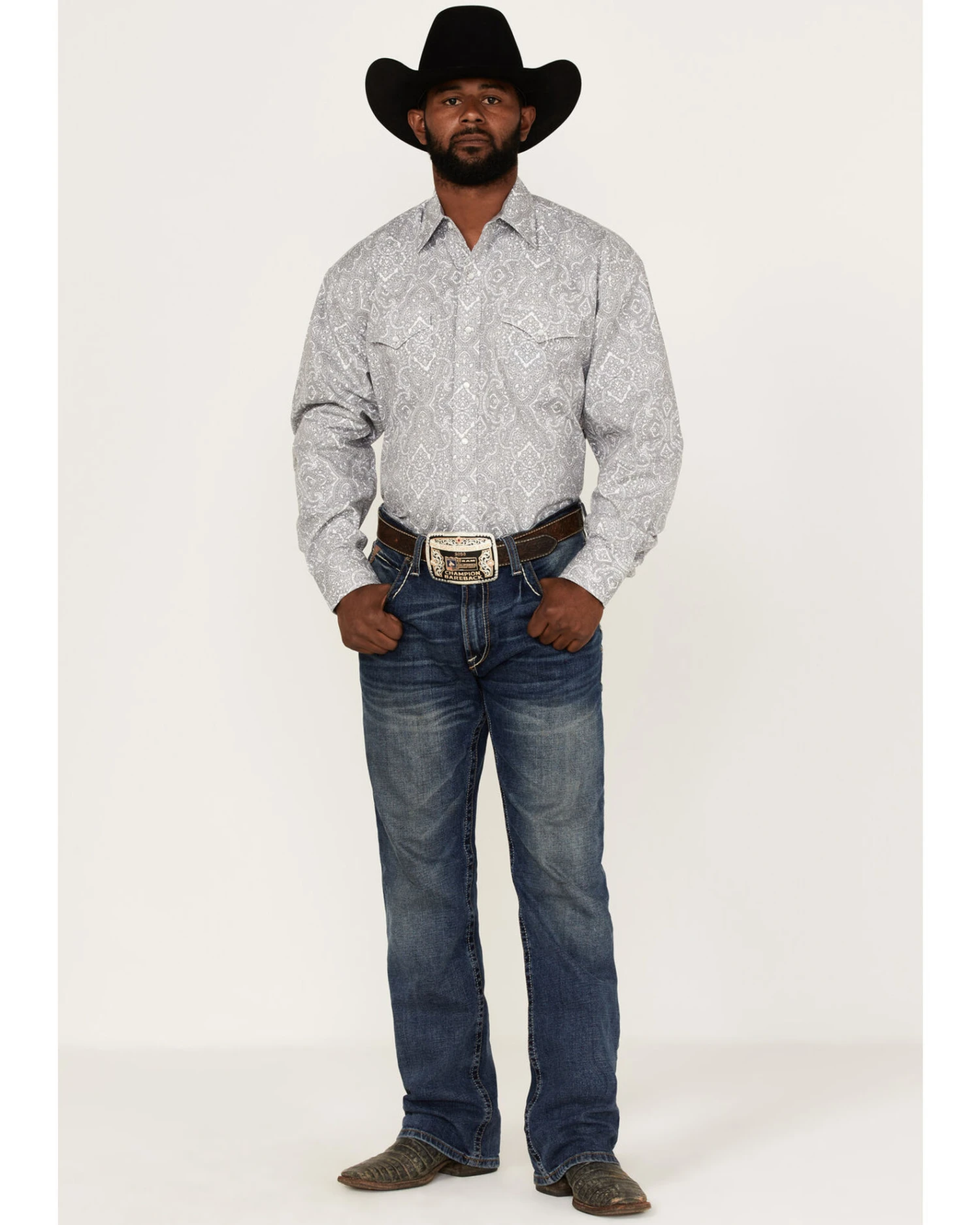 - Pearl snap down front placket