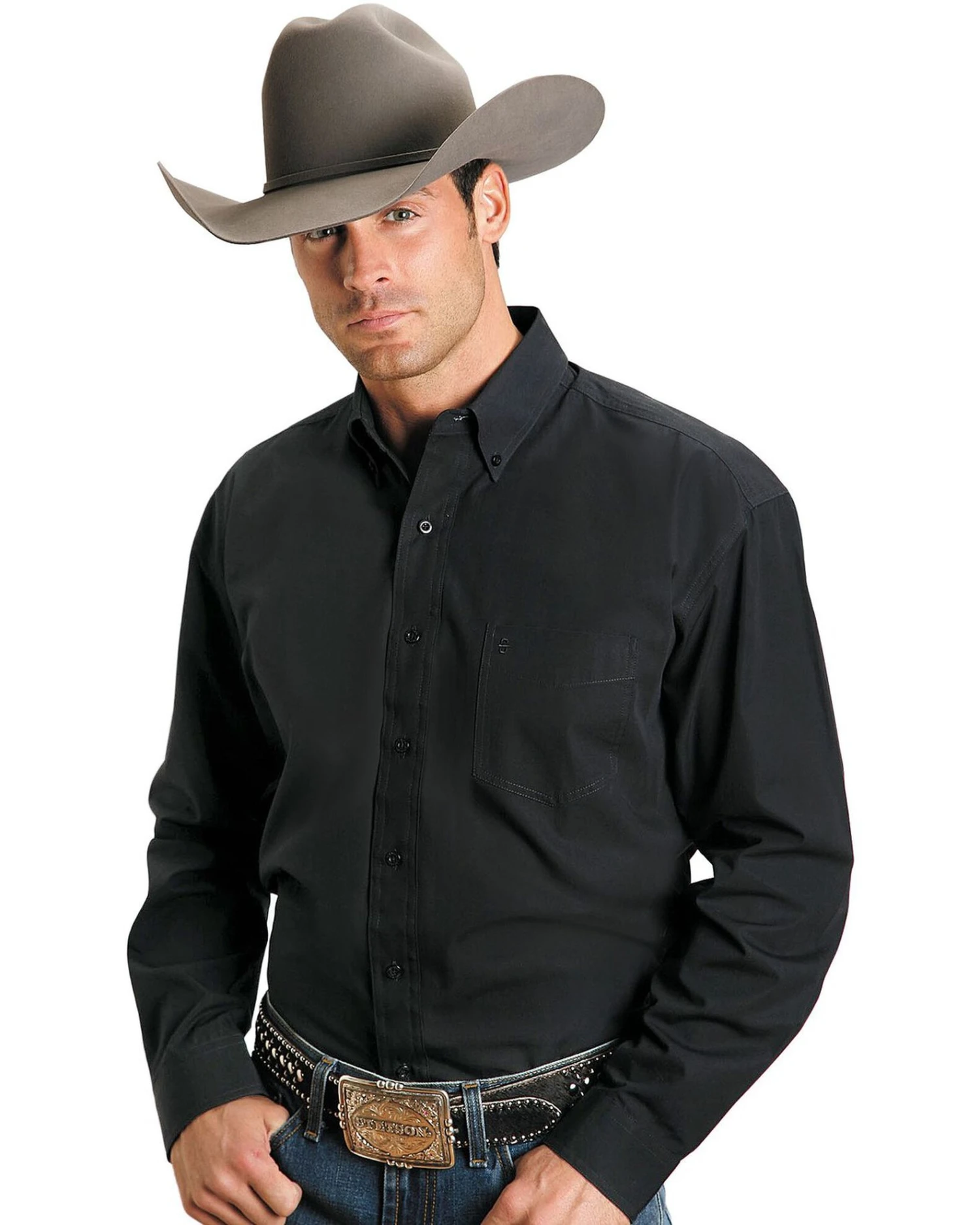 - Open left chest pocket boasts Stetson logo embroidery