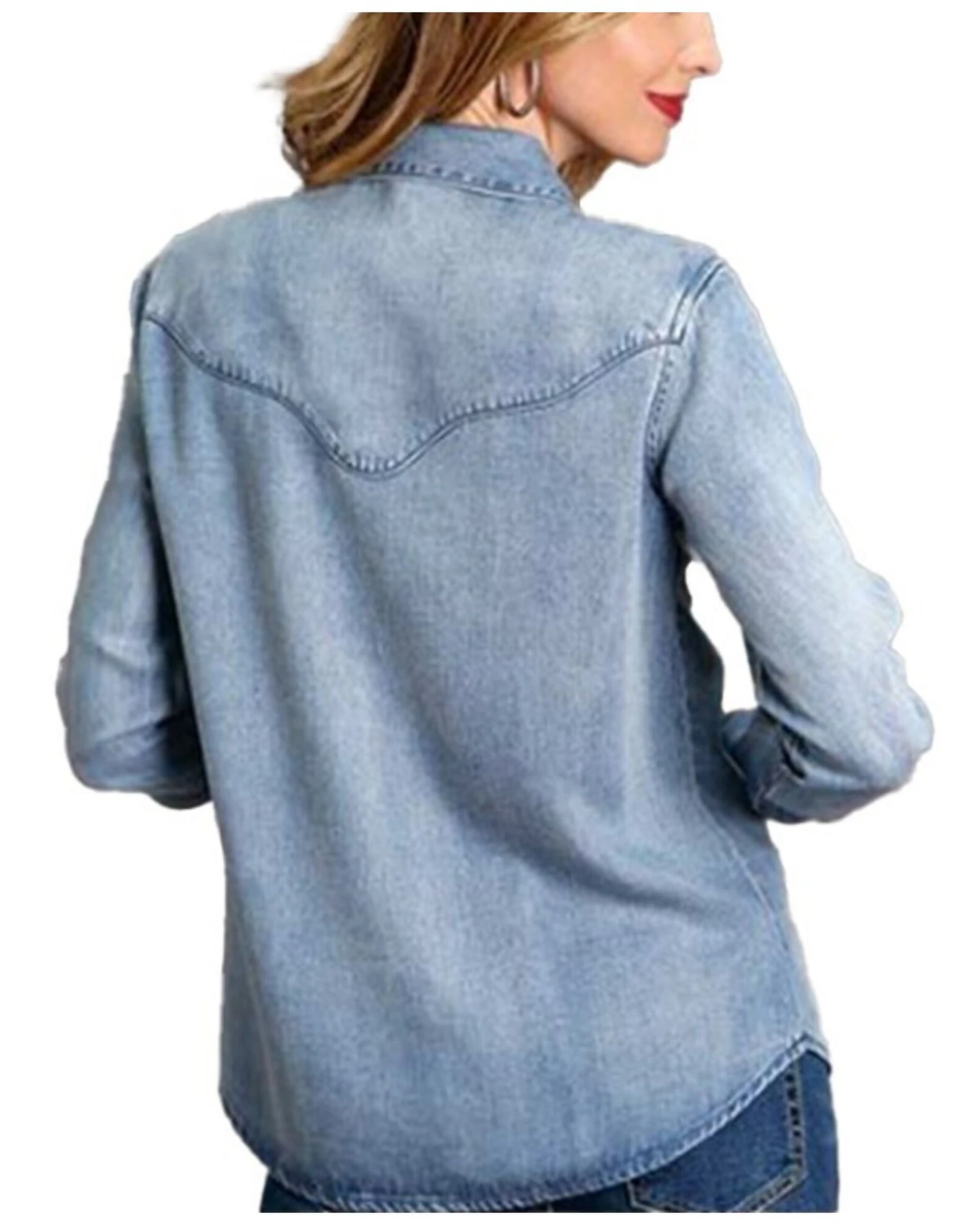 Stetson Women’s Solid Denim Long Sleeve Snap Western Shirt